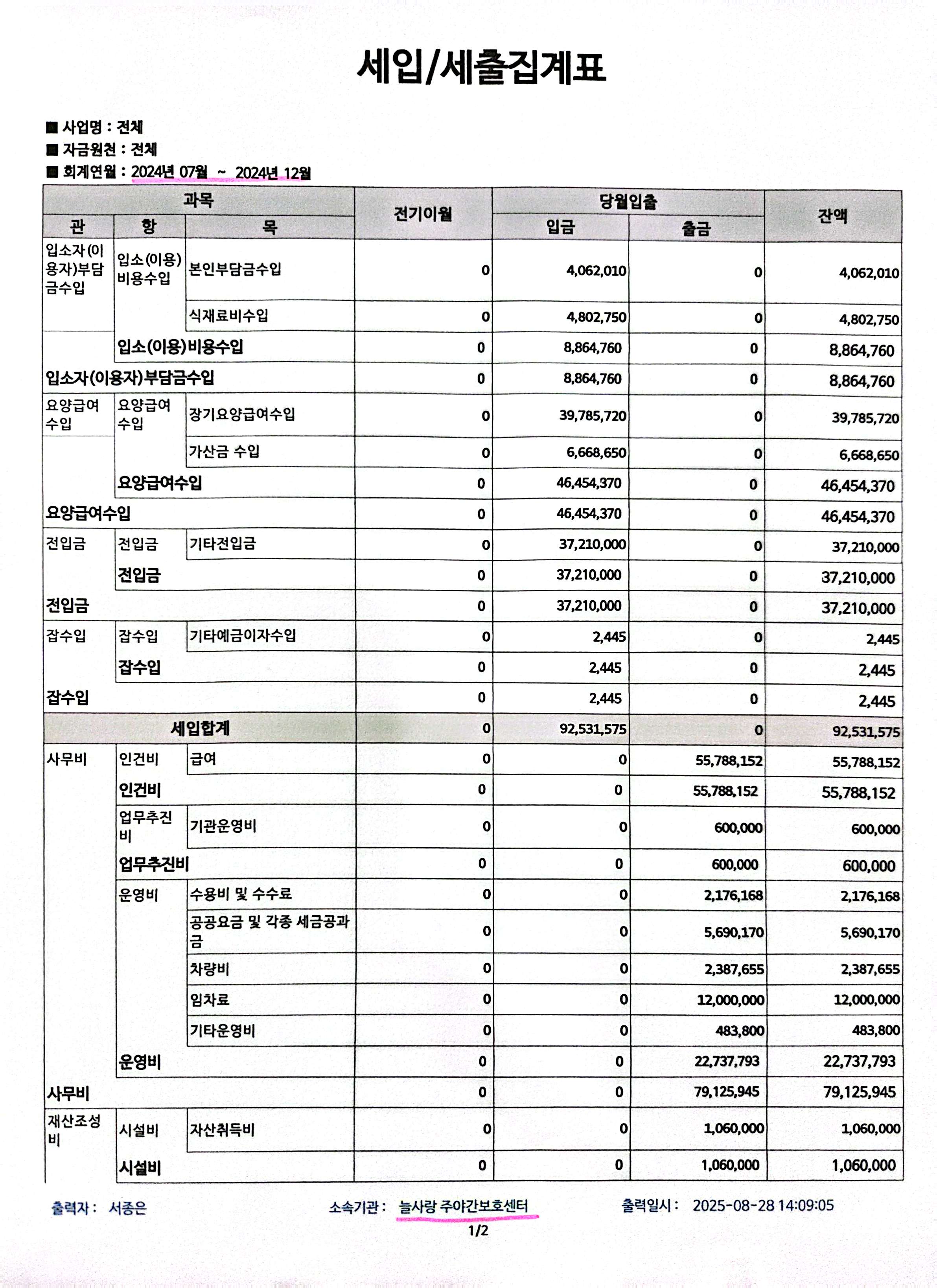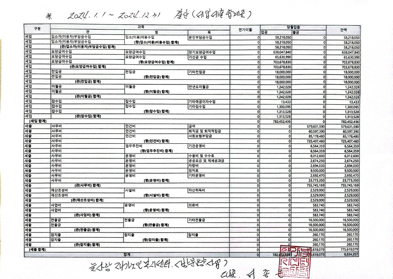 방문요양사업 24년 결산자료